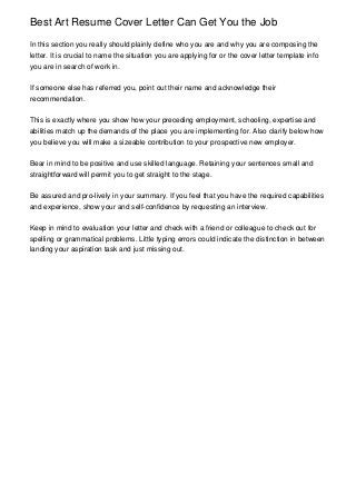 The Best Resume Cover Letter - When you create a resume and cover letter, specific word choices help your resume stand out from the competition.. Here are some of the best cover letter examples, including one submitted to us at hubspot. Do you know how to write a cover letter? Howstuffworks.com contributors cover letters are a potential employer's first contact with you. If a job requires you to apply via resume, you also must provide the hiring company with a cover letter. Is a cover letter necessary for a resume at an interview?.